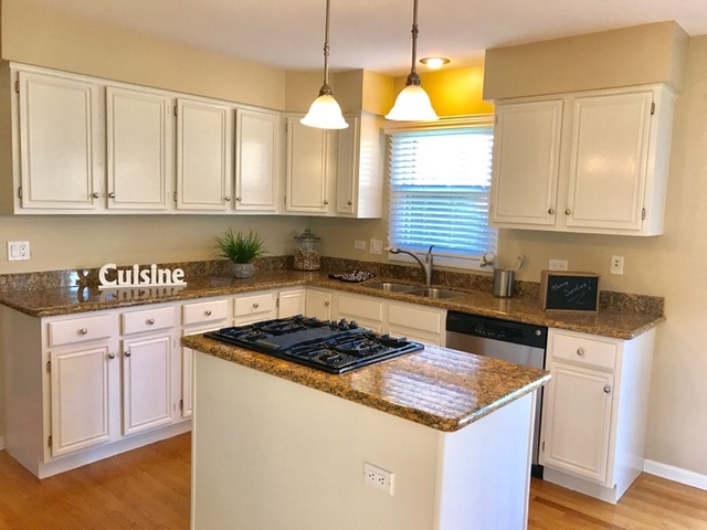 BARRINGTON SCHOOLS in Estates of Deer Crossing!!Updated home with hardwood flooring throughout and finished basement with kitchen and bathroom. Location is everything - be in the heart of it all! Great place to live - Great Investment! So many nice upgrades and updates to this contemporary home! This is a spacious 4 bedroom house with a finished basement. Home includes a bright 2-story foyer with a winding wood staircase to the second floor. Open living and dining rooms with lots of windows. Home boasts a good size island kitchen with granite and stainless steel appliances.The 2-story family room includes over sized windows with light pouring in. Beautifully updated black marble fireplace with a raised hearth and painted mantle. 4 spacious bedroom and 2 full bathrooms on the second floor. Vaulted ceilings in both the master bedroom and bathroom. Master bath suite includes a separate shower, large soaker tub and walk-in closet.Finished basement includes Kitchen and Bathroom