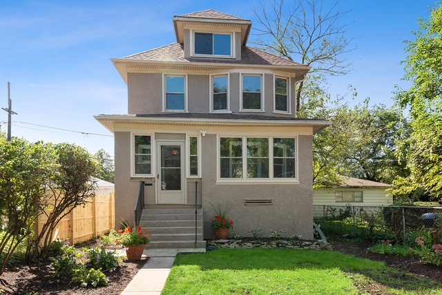 Light filled stone and brick 2-flat located on a quiet tree lined street in Evanston. The top floor owner's unit features white shaker cabinets, quartz counter tops, SS appliances and an updated bathroom. The spacious living room is open to the dining area and kitchen. There are hardwood floors throughout, plenty of canned lighting and ceiling fans in the bedrooms. The 1st floor unit feature a separate living room & dining room, 2 bedroom, 1 bathroom, walk in closets, hardwood floors and crown moldings. The basement has two finished rooms, a 1/2 bathroom and a laundry room that is shared by both units. There is a fenced back yard and 2 car garage. Both units have their own gas forced heating and central A/C.